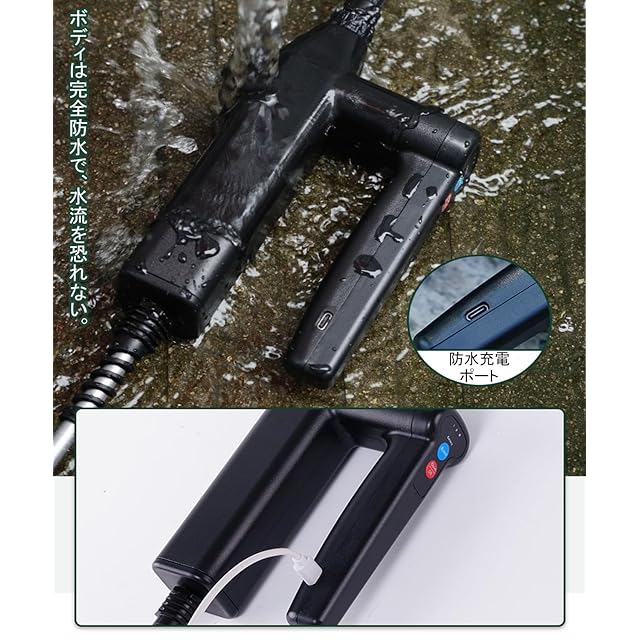 【2000mAh大容量バッテリー】大容量リチウムバッテリー搭載で、満充電時最大2.5~3時間連続噴射可能。Type-C急速充電対応で約3時間でフル充電。付属の充電ケーブルでいつでも簡単充電。コードレス設計で屋内・屋外を問わず自由に使えます。