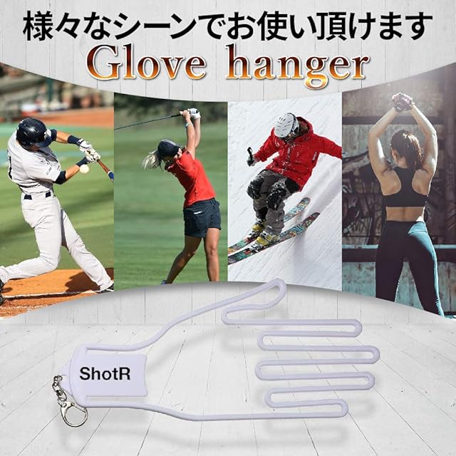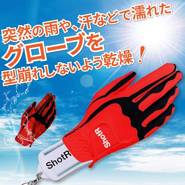 ゴルフグローブを簡単にセットして、型崩れを防止しながら乾かす事ができるグローブハンガーです。 雨や汗で濡れたグローブを放置すると、型崩れや臭いの原因となります。グローブキーパーなら、手袋ののシワを伸ばして干し、次回利用時に気持ちよく利用できます。 バックにキーホルダーとして装着できるので、グローブを干していいる時も干していいない時もとても軽量なアクセサリーとなります。 ゴルフ以外のスポーツ、野球・バイクやサイクリング、アウトドア等のグローブ・手袋にも使用できます。
