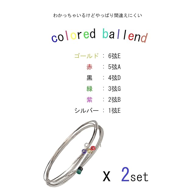 色付きのボールエンドですので、1弦と2弦など、油断していると起こる間違いを防ぎます。