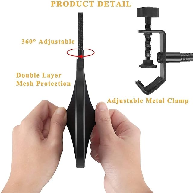 【ネック、フレキシブルアーム部分360°調整可能】ポップブロッカーのフレキシブルアームの長さは365mmで、360度全方向調整可能で自在に形を変えられ固定する事が可能!金属製材料を採用して、高級感もあります。